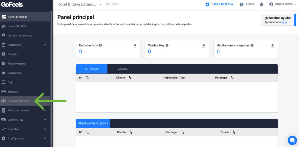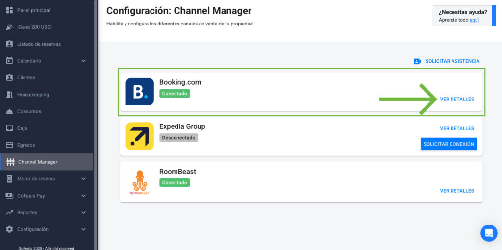 Paso 1: Ingresa a tu cuenta de GoFeels, y dirígete al módulo de Channel Manager, ubicado en el menú al costado izquierdo de la pantalla: