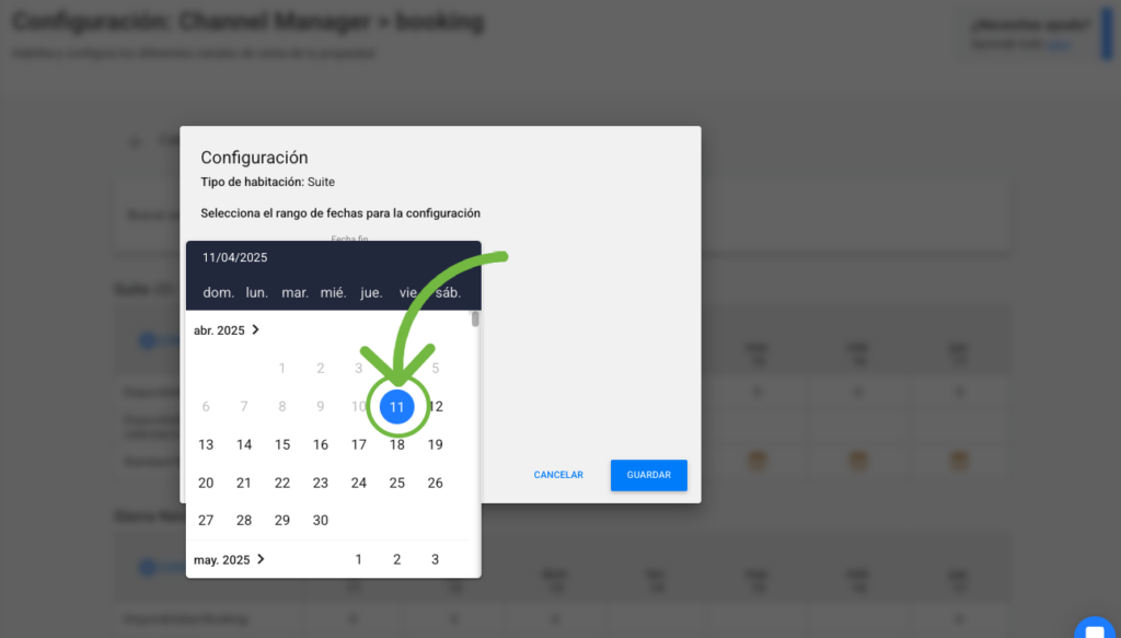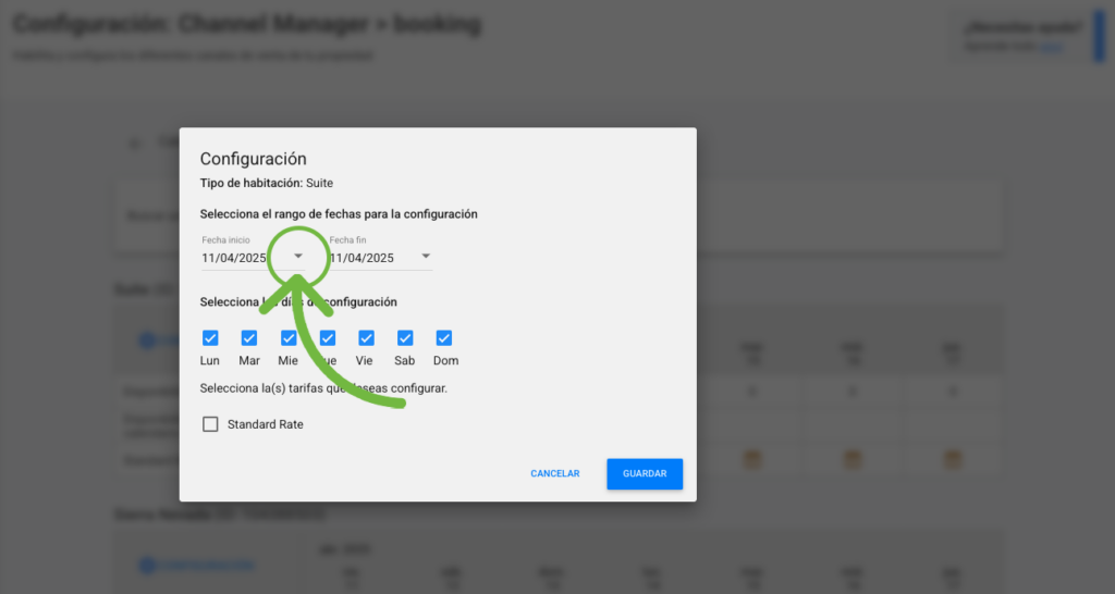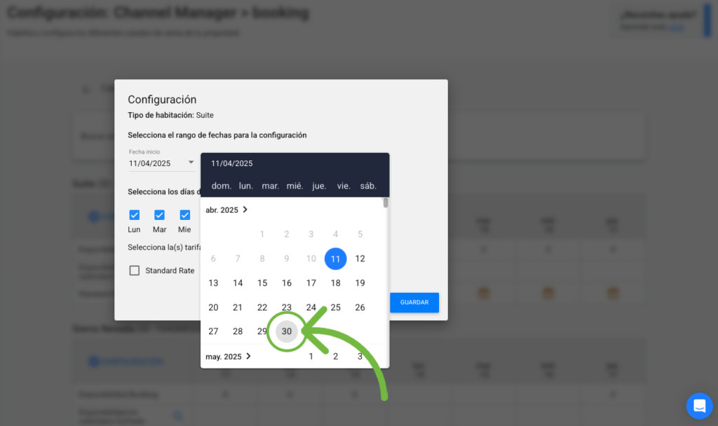 Paso 7: Selecciona la Fecha inicio del rango a configurar (es posible seleccionar fechas futuras partiendo por el día en curso).