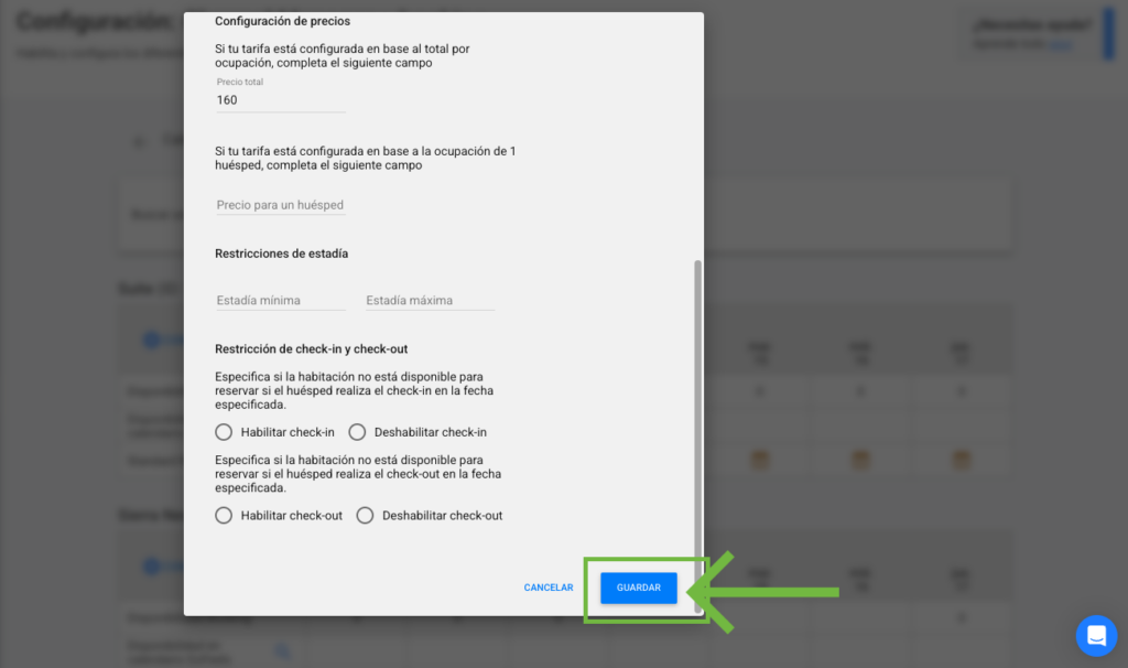 Paso 12: Para finalizar haz clic en GUARDAR. De forma automática los precios serán enviados y sincronizados con Booking.