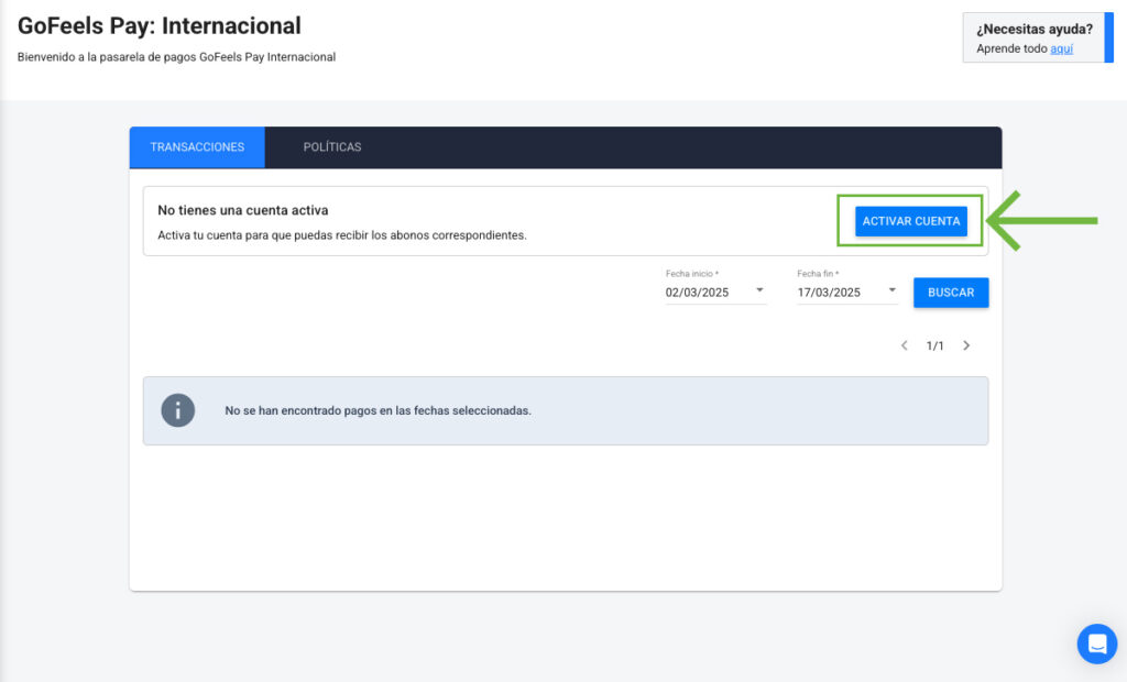 Paso 1 : Ingresar a la sección «GoFeels Pay».