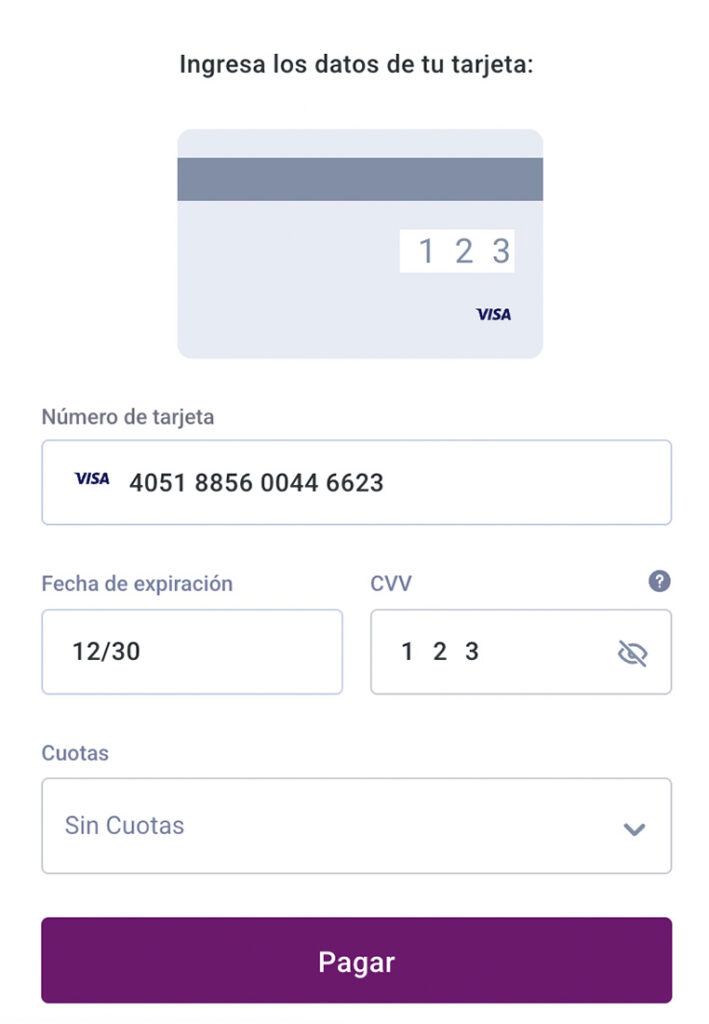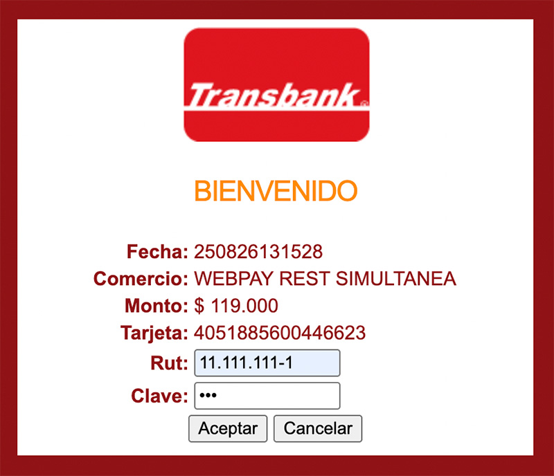 Debes utilizar las siguientes credenciales (para simular datos bancarios)